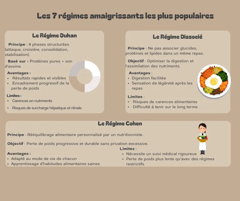 Il n’existe pas de régime universel. La durabilité dépend surtout d’un rééquilibrage alimentaire adapté à votre mode de vie, comme le propose par exemple le régime Cohen. Les régimes trop restrictifs (Hollywood, Dukan…) entraînent souvent un effet yoyo.